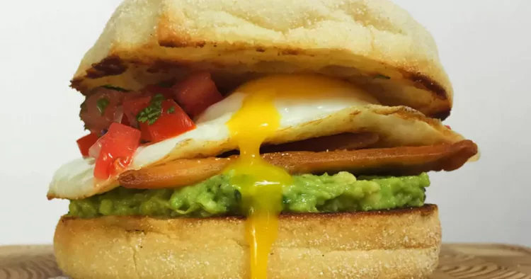 Mod de preparare: Amesteca avocado cu lamaie si coriandru si taie-l in bucati. Asezoneaza cu sare si piper. Taie cascavalul in triunghiuri si adauga-l in chifla, incalzeste-l la 190 de grade 5 minute. Intre timp pregateste un ou ochi si adauga-l in chifla, adauga avocado deasupra, rosiile amestecate cu ulei d emasline si lamaie, iar apoi pune ceapa deasupra. Pe a doua parte a chiflei unge unt si completeaza sandvisul. Il poti servi cu mare pofta pentru ca este delicios si consistent!
